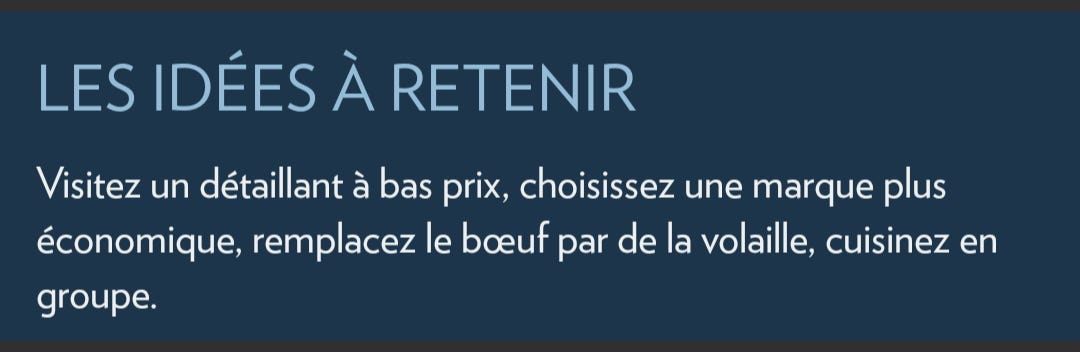 S’ensuit tout un dossier sur comment on devrait être reconnaissant·es que les boss de IGA pis Métro daignent nous nourrir, eux qui ont tellement des jobs difficiles, pis comment, au fond, c’est juste une excellente nouvelle qui va nous forcer à être plus créatif·ves, à moins gaspiller et à mieux chasser les aubaines. Par exemple, on apprend dans cet éclairant article que si on prenait le temps de faire nos propres cannages avec un sac de tomates fraîches du marché, non seulement on économiserait sur l’épicerie, mais on économiserait aussi sur le psy, parce qu’on soignerait notre estime personnelle grâce à LA FIERTÉ. Quelle fierté que de tendre la main vers un pot de sauce tomate maison qui n’a coûté que 99 cennes ainsi que 4 heures qu’on n’a pas dans notre fin de semaine!